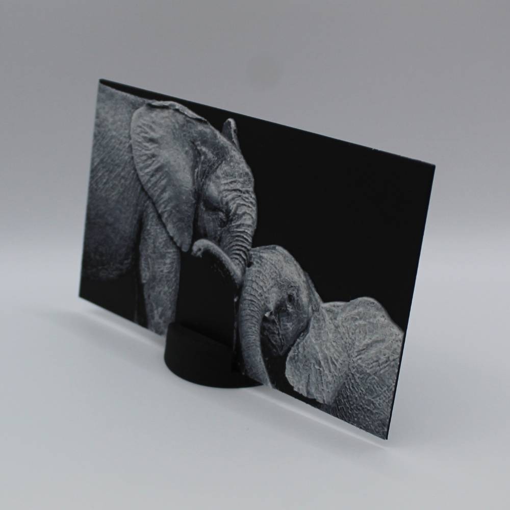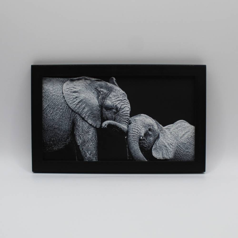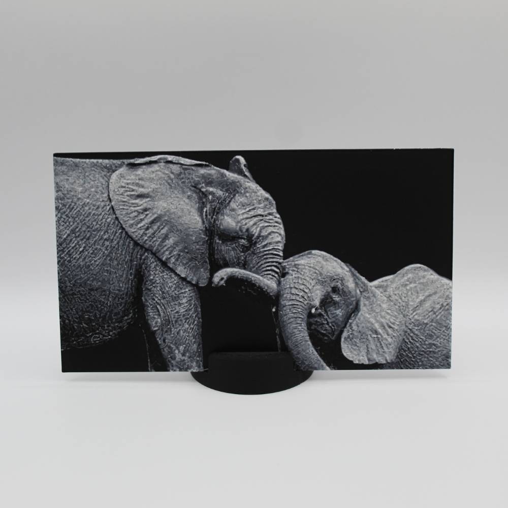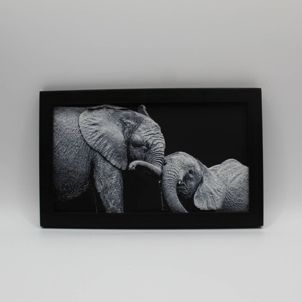 Laisse-toi toucher par la tendresse et la complicité de ces éléphants à travers cette photo 3D imprimée en relief.