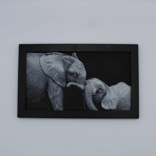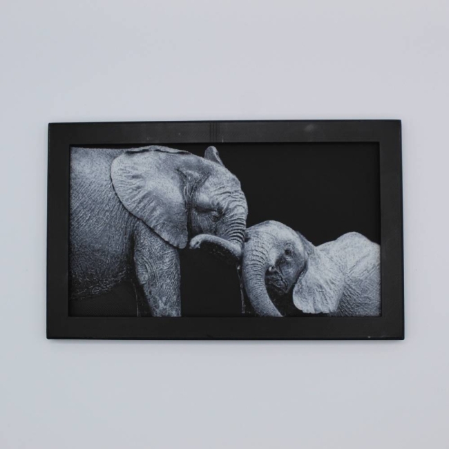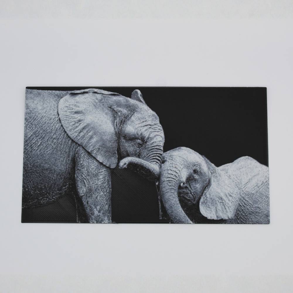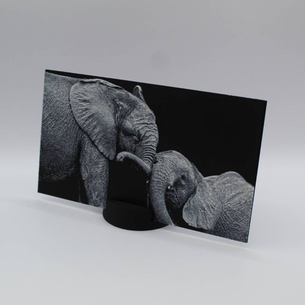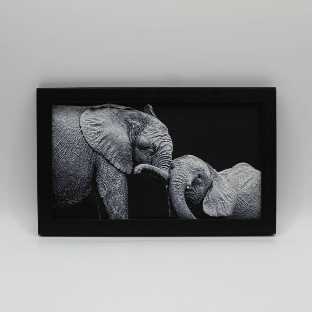 Laisse-toi toucher par la tendresse et la complicité de ces éléphants à travers cette photo 3D imprimée en relief.