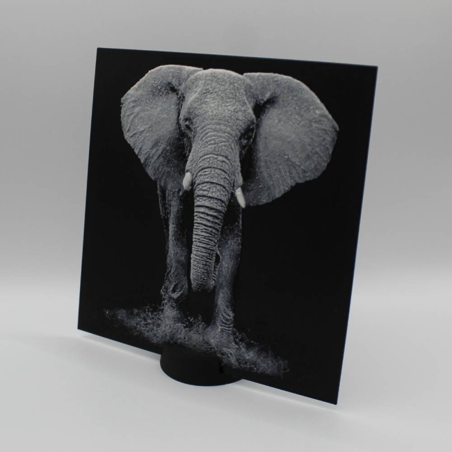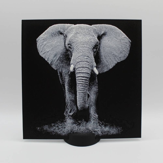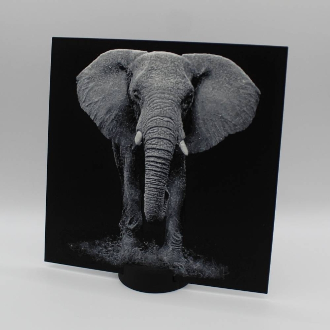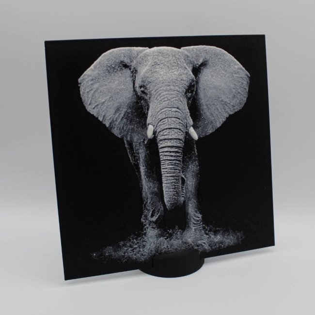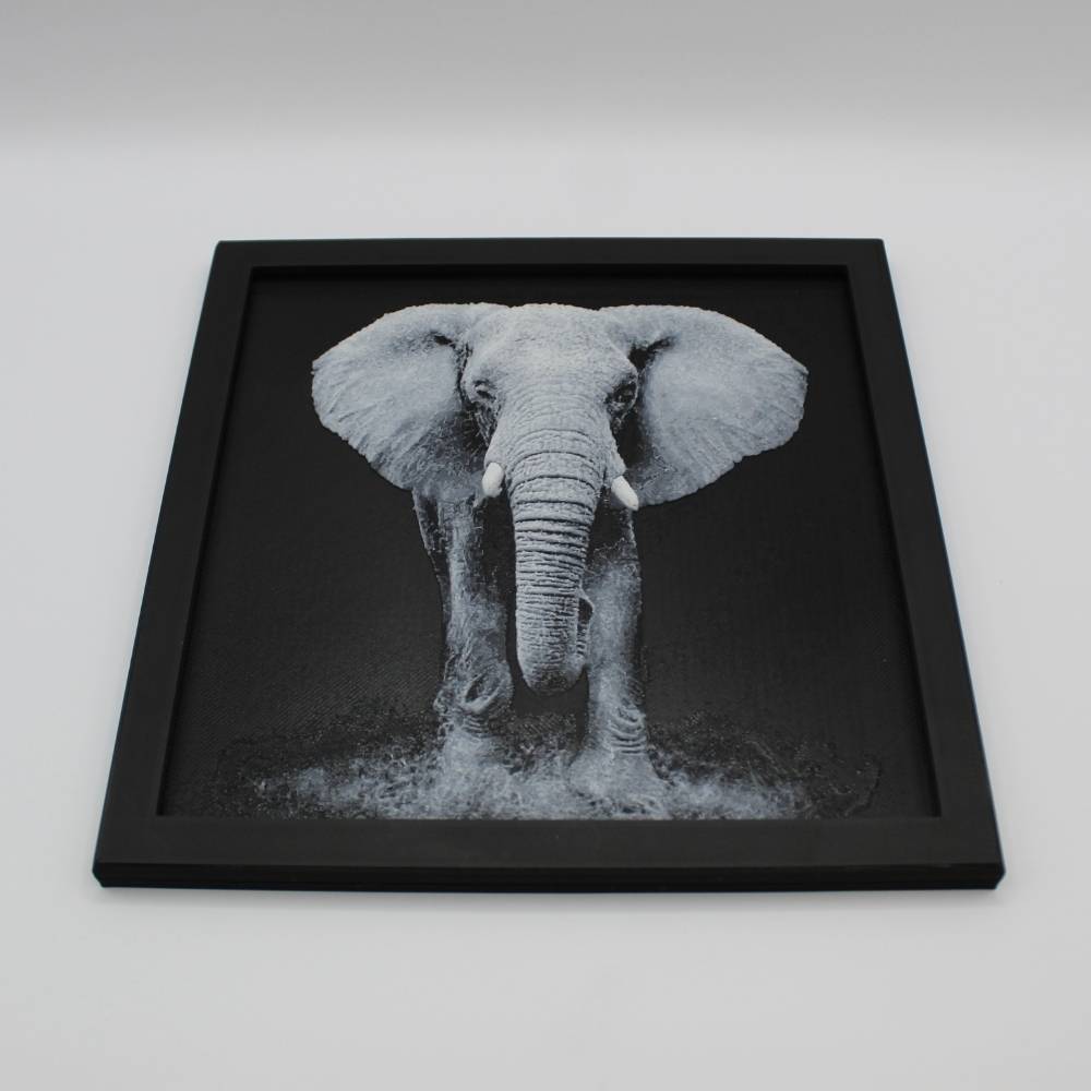 Laisse-toi séduire par la présence sereine de cet éléphant majestueux. Grâce à l’impression 3D, chaque relief, chaque pli de sa peau et la profondeur de son regard prennent vie avec un réalisme et une intensité saisissants.