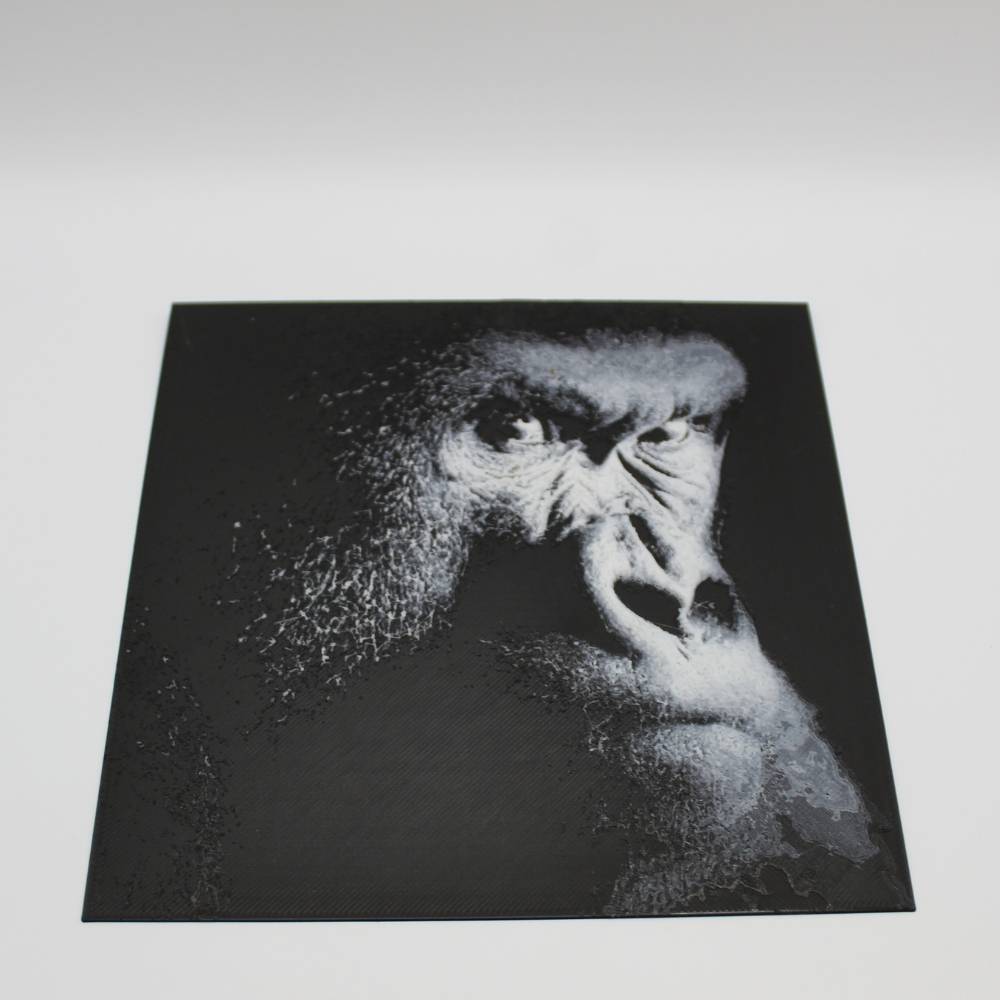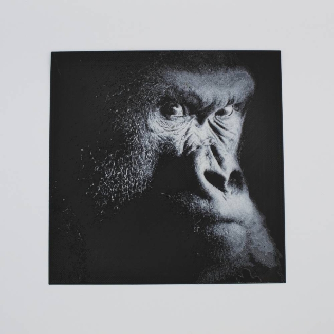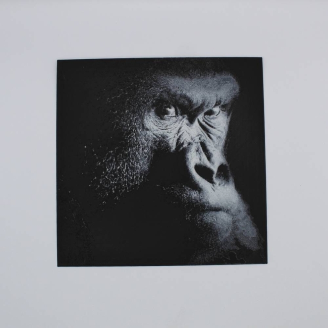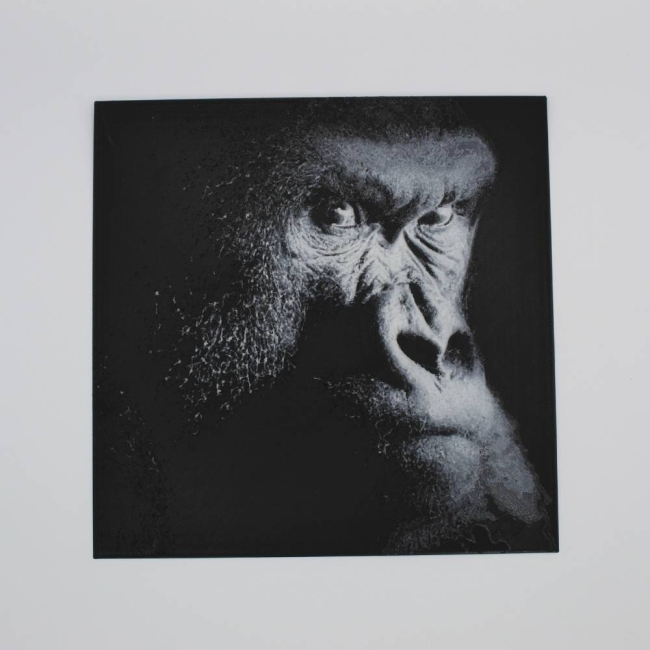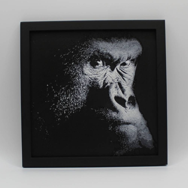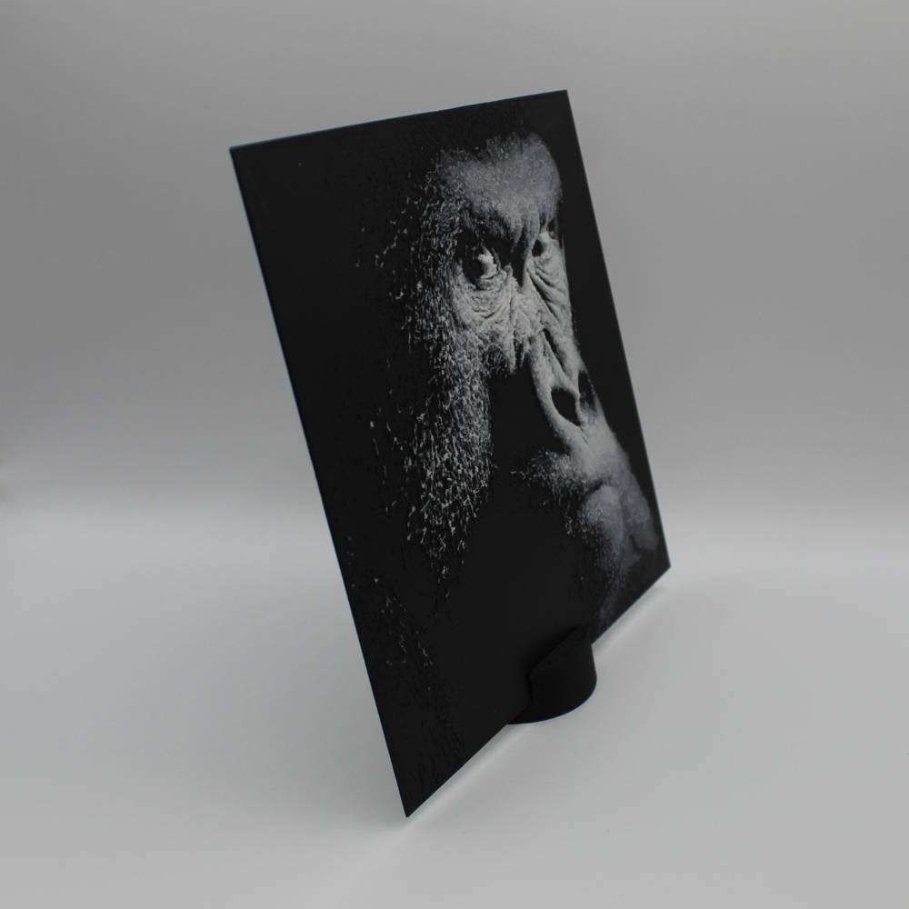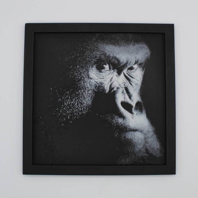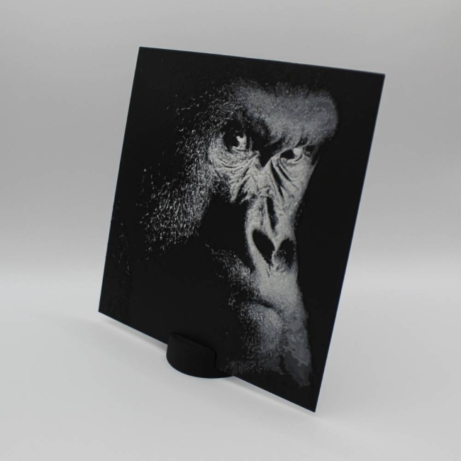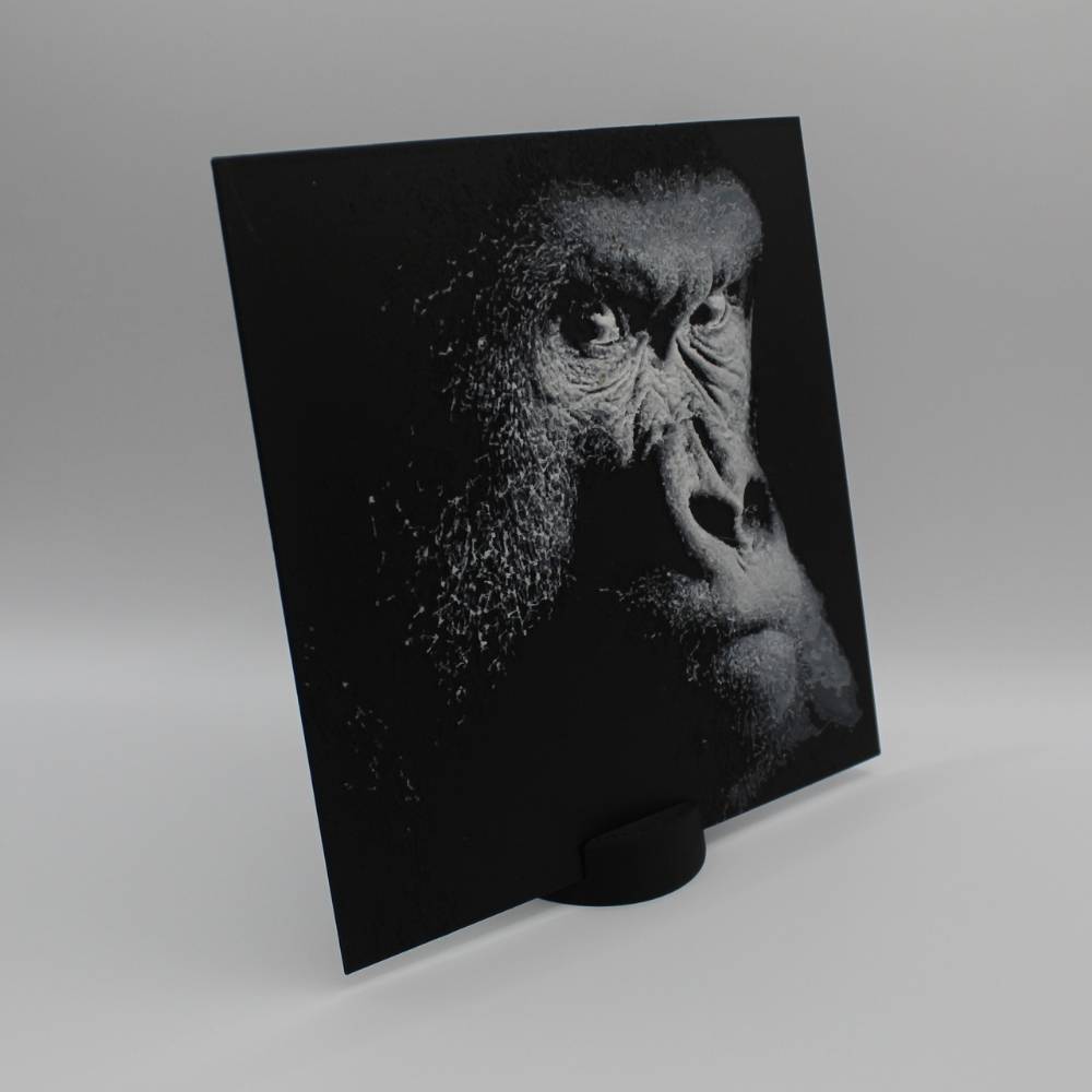 Plonge dans l’intensité du regard du gorille avec cette photo 3D imprimée en relief. Chaque détail de son visage est sublimé par le jeu d’ombres et de lumière, offrant un effet de profondeur impressionnant qui capte instantanément le regard.