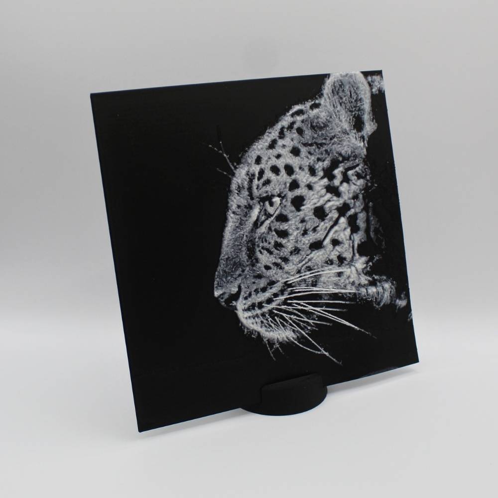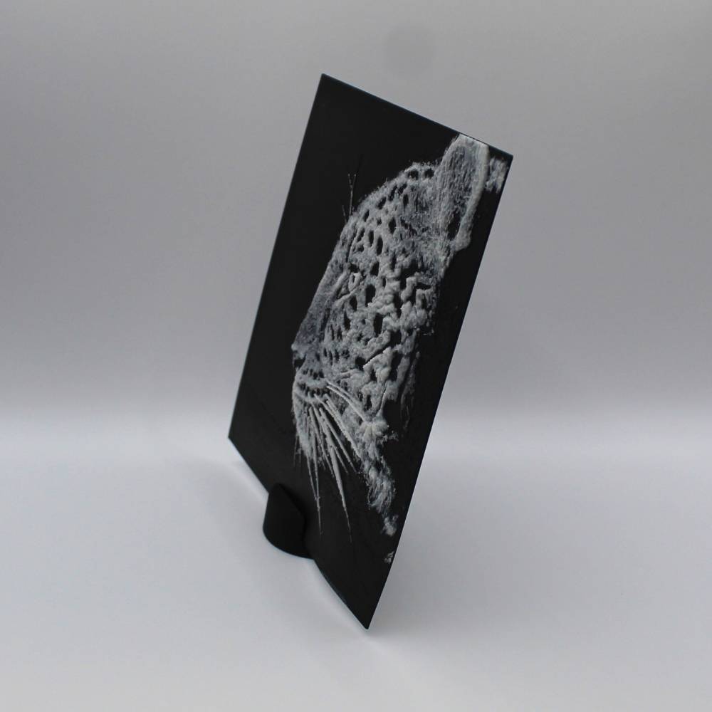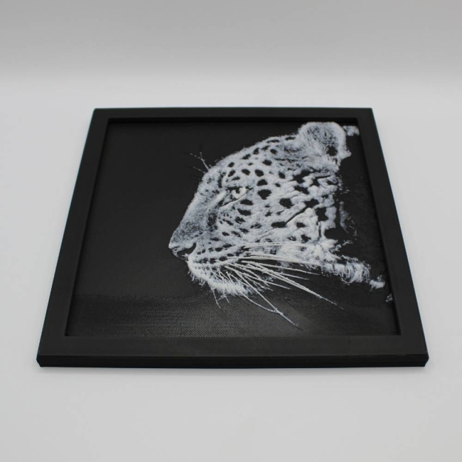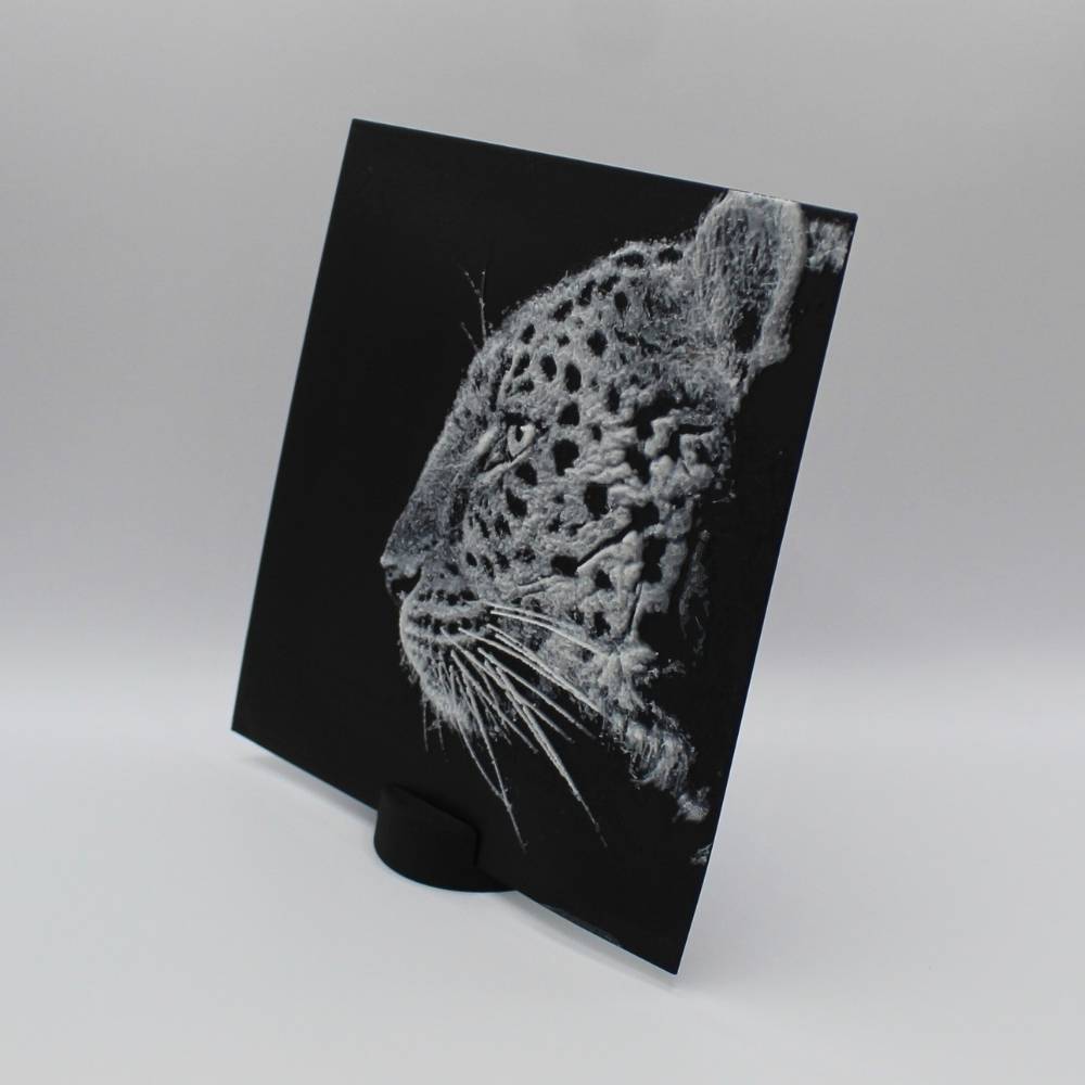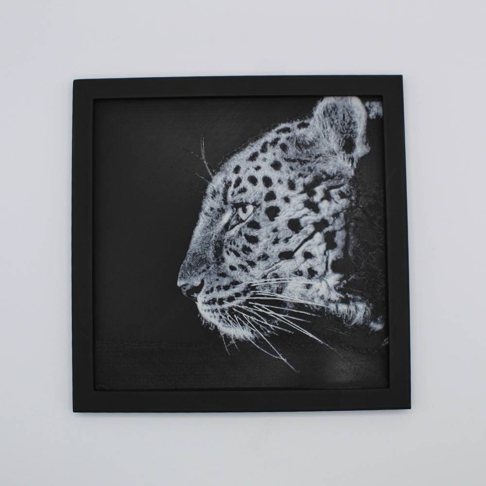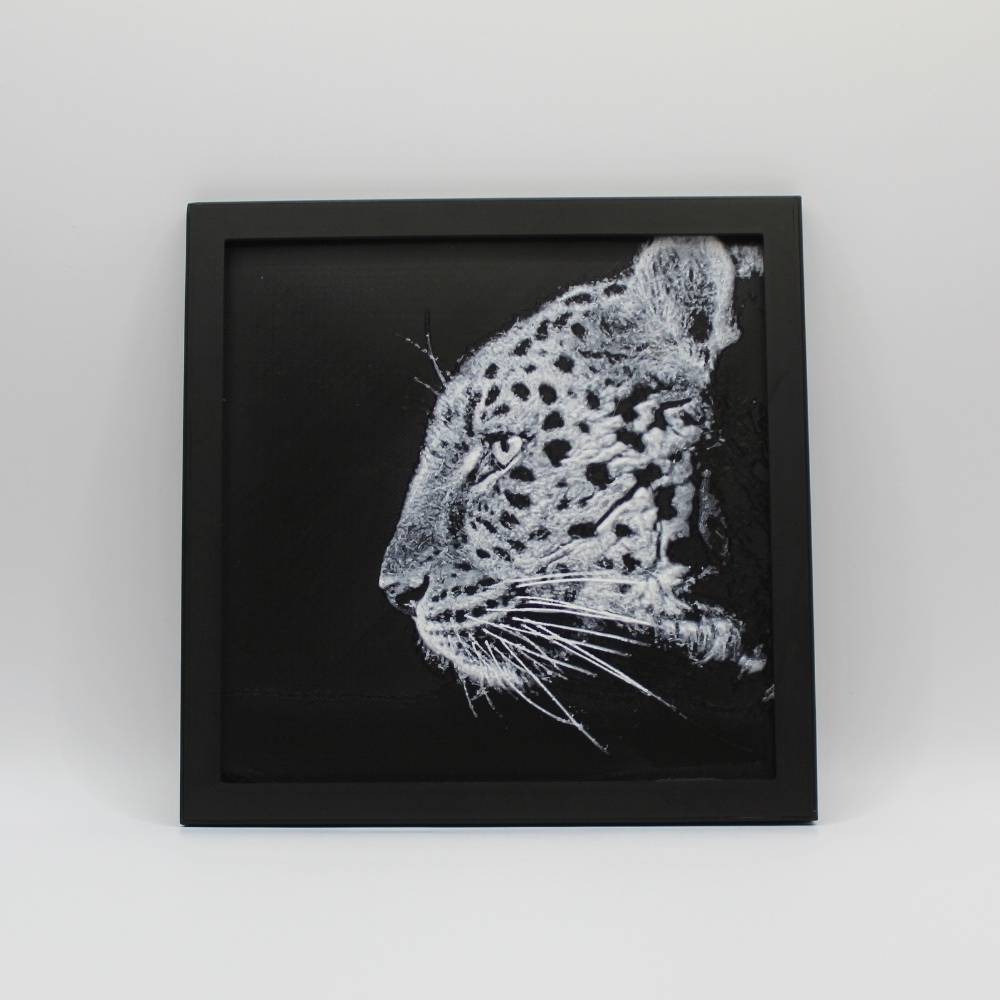 Découvre toute l’élégance et la puissance du léopard à travers cette photo 3D imprimée en relief.