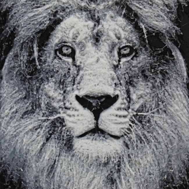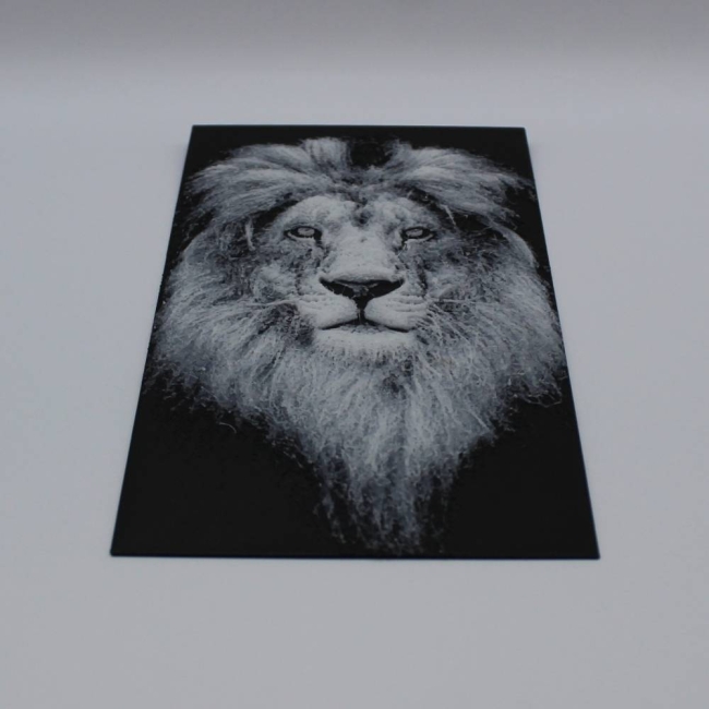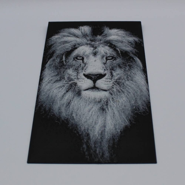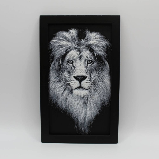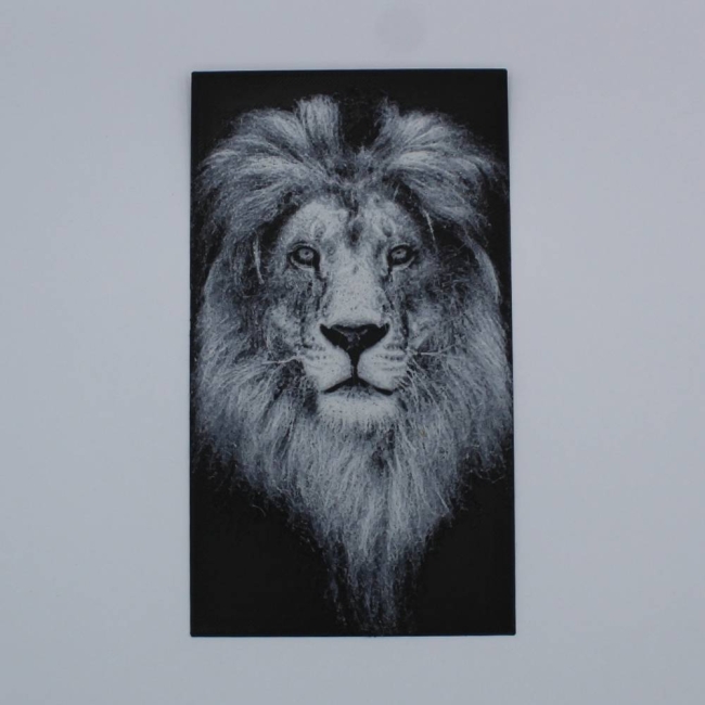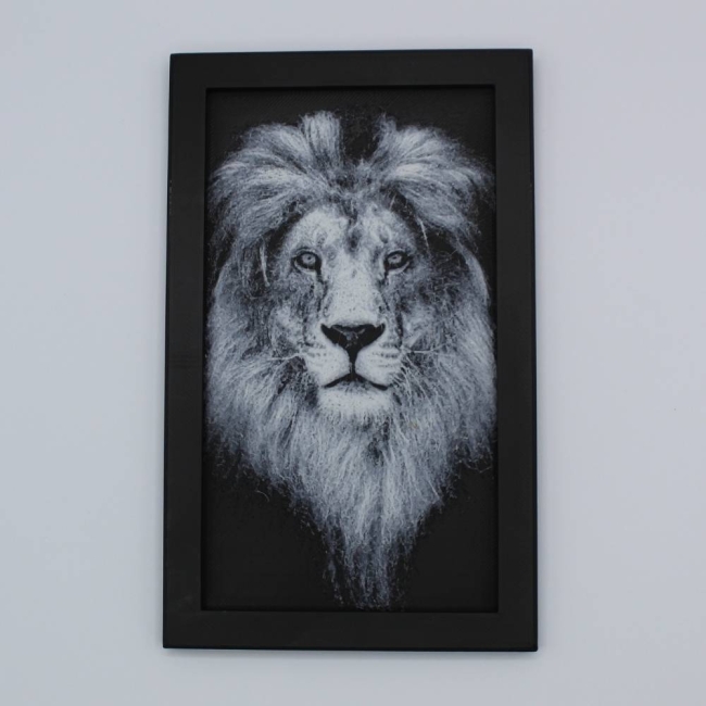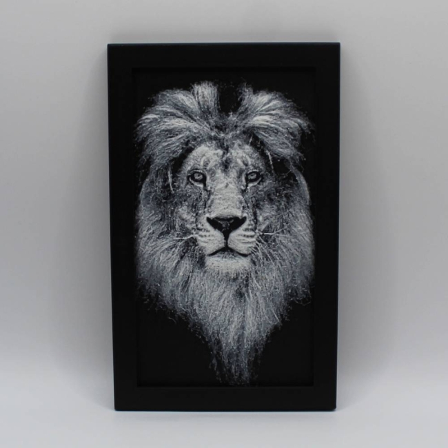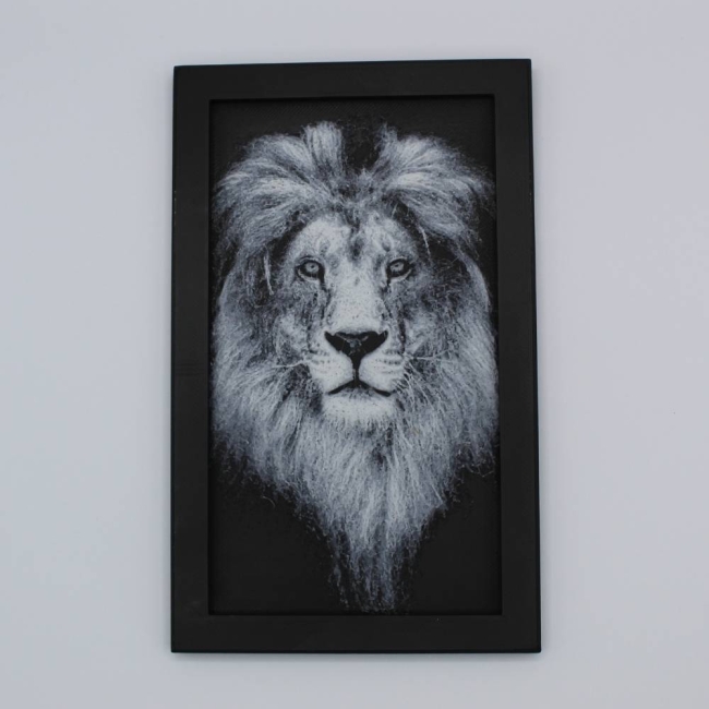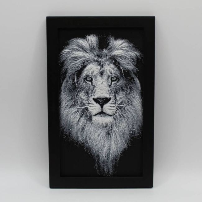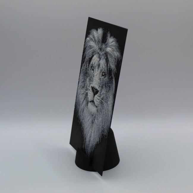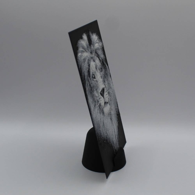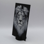 Découvre la puissance tranquille du roi de la savane à travers cette photo 3D imprimée en relief.