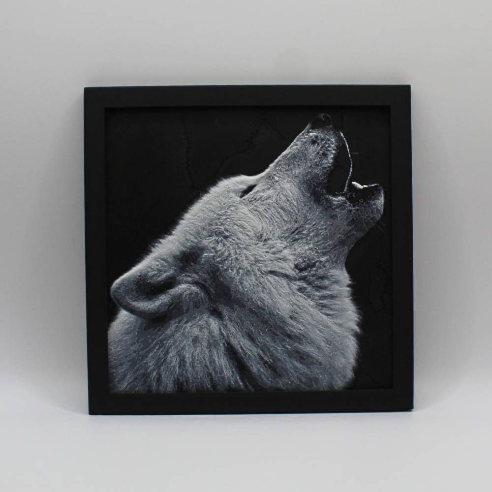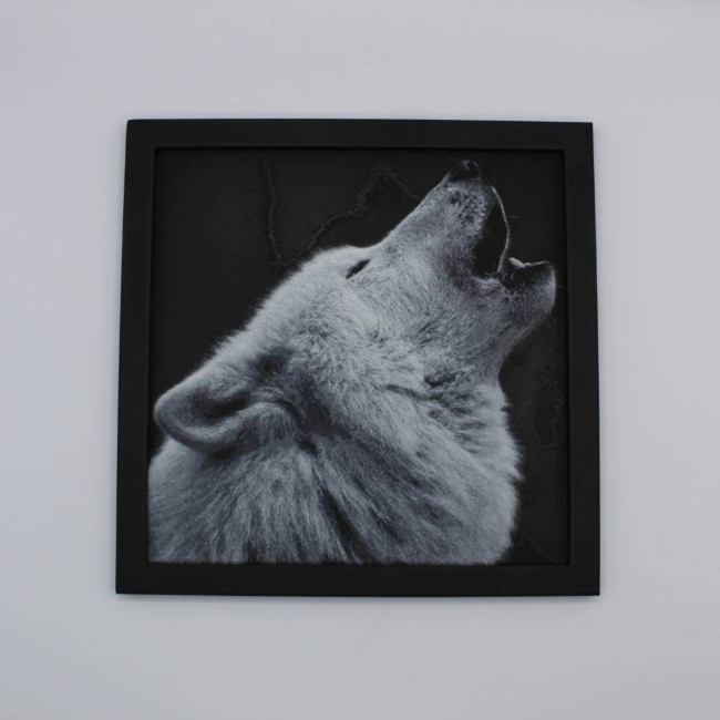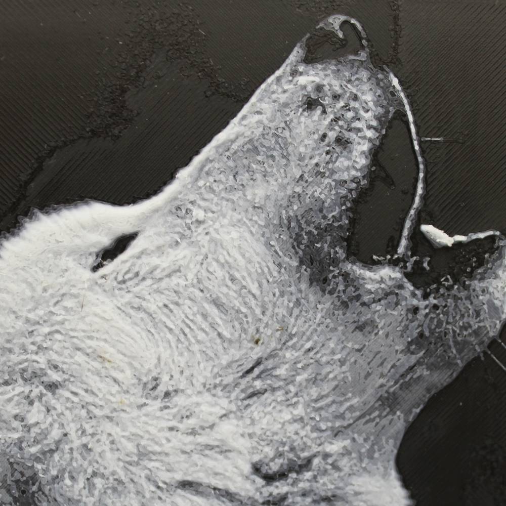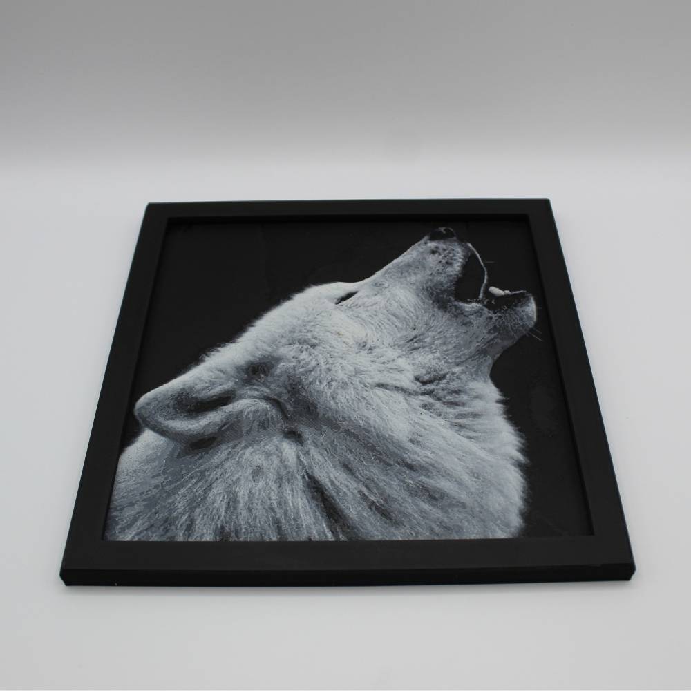 Laisse-toi emporter par la puissance et la liberté du loup blanc à travers cette photo 3D imprimée en relief.