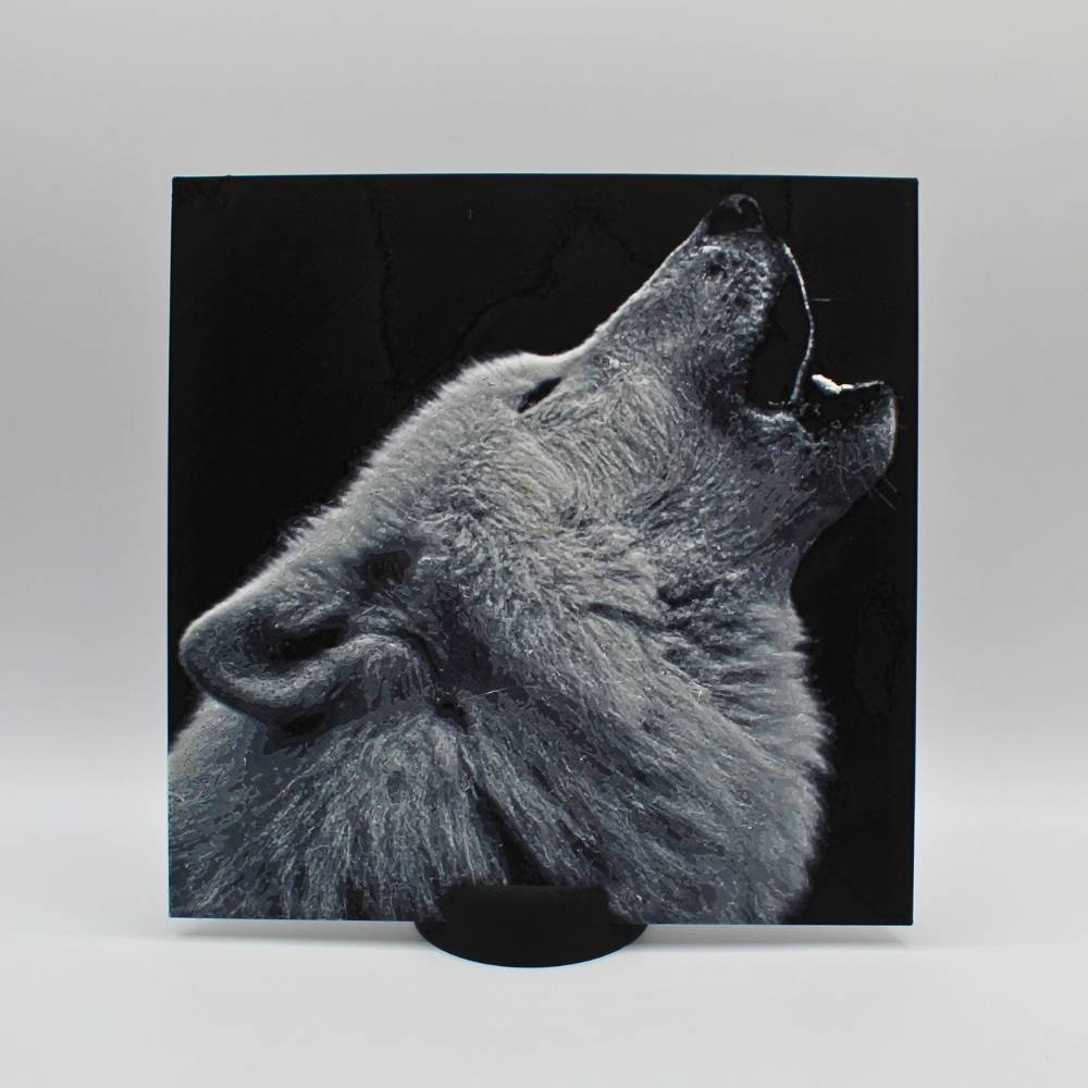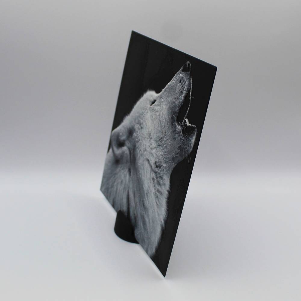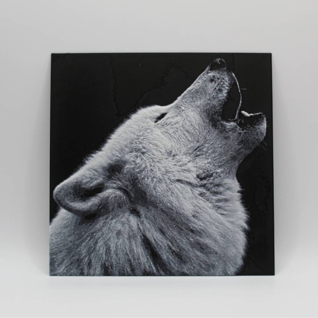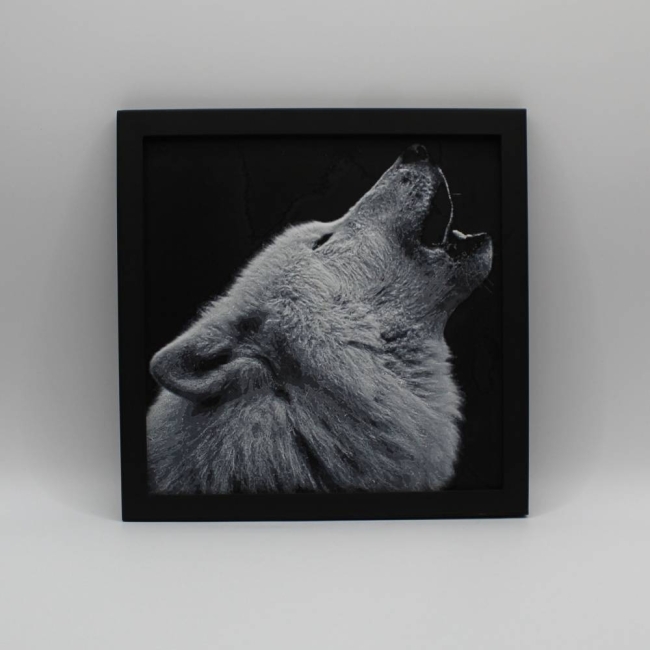 Laisse-toi emporter par la puissance et la liberté du loup blanc à travers cette photo 3D imprimée en relief.