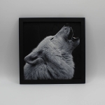 Chaque détail de sa fourrure et de son hurlement est mis en valeur par le jeu d’ombres et de lumière, créant un effet de profondeur saisissant qui donne vie à l’image.