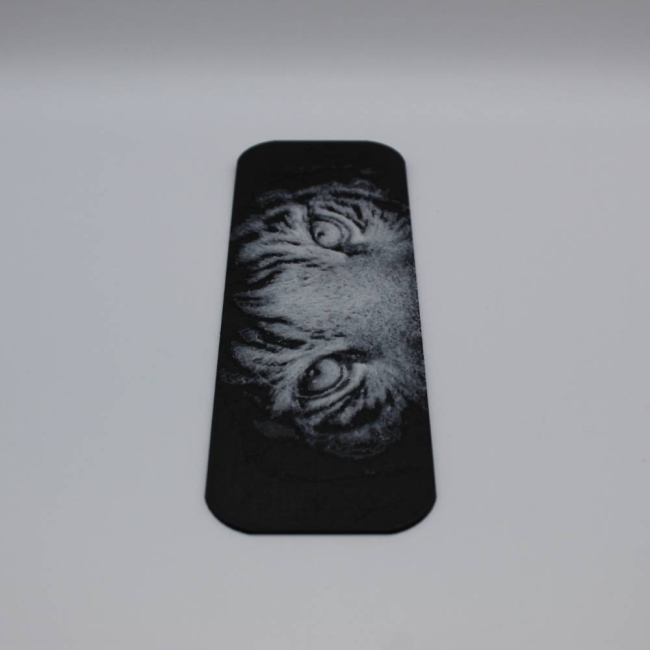 Le contraste saisissant du noir et du blanc ainsi que le relief minutieux des pupilles donnent vie à ce regard à la fois puissant et empreint de douceur, pour un rendu fascinant et hypnotique.