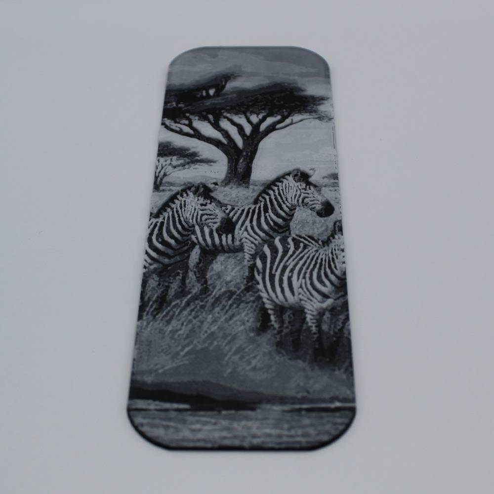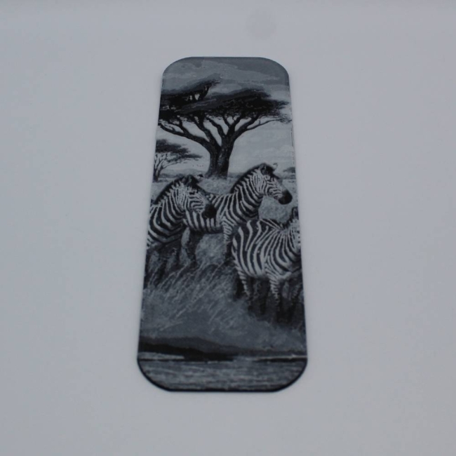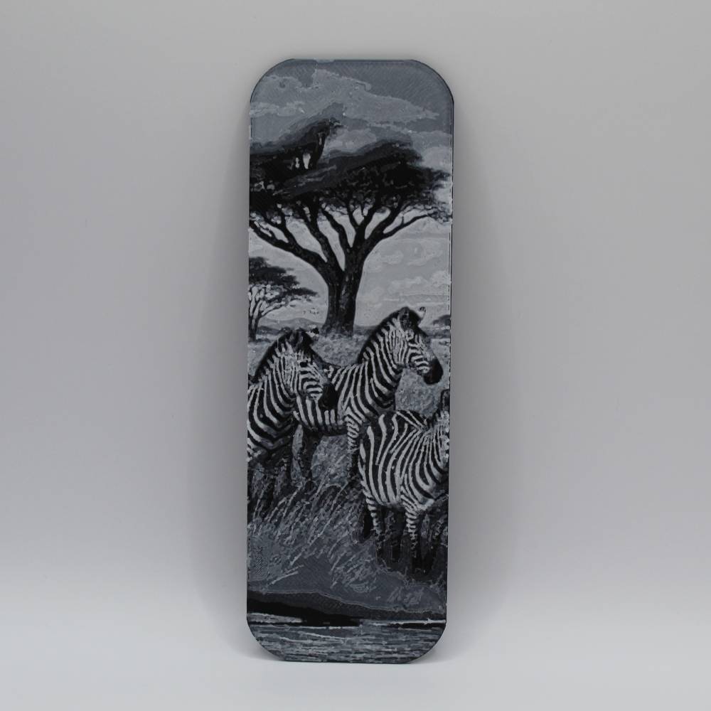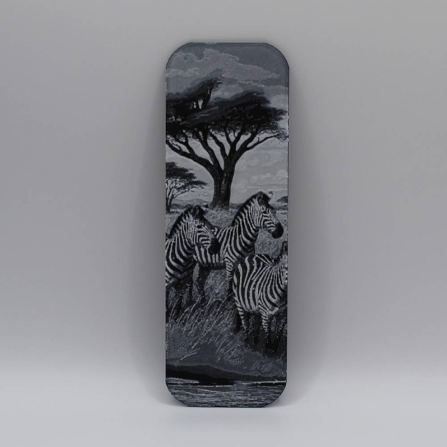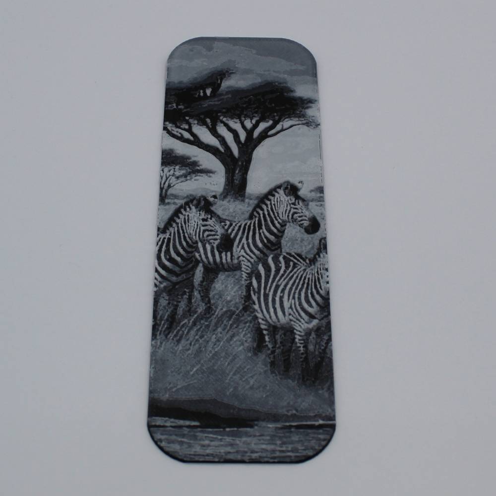 Plonge au cœur de la savane à chaque lecture avec ce marque-page 3D représentant des zèbres près d’un point d’eau, paisiblement réunis pour s’abreuver.