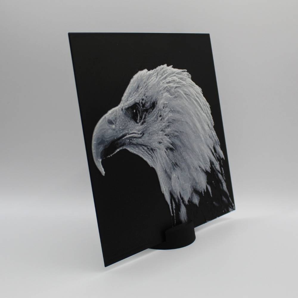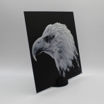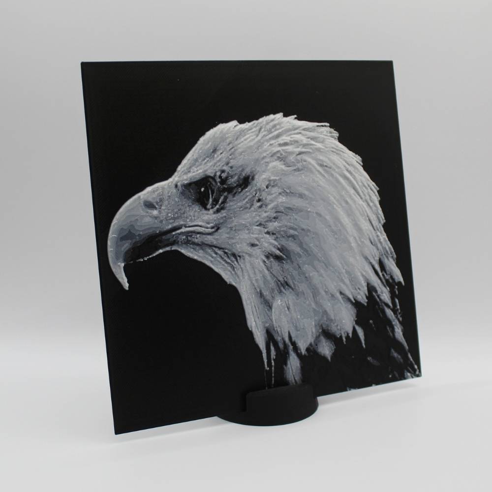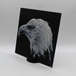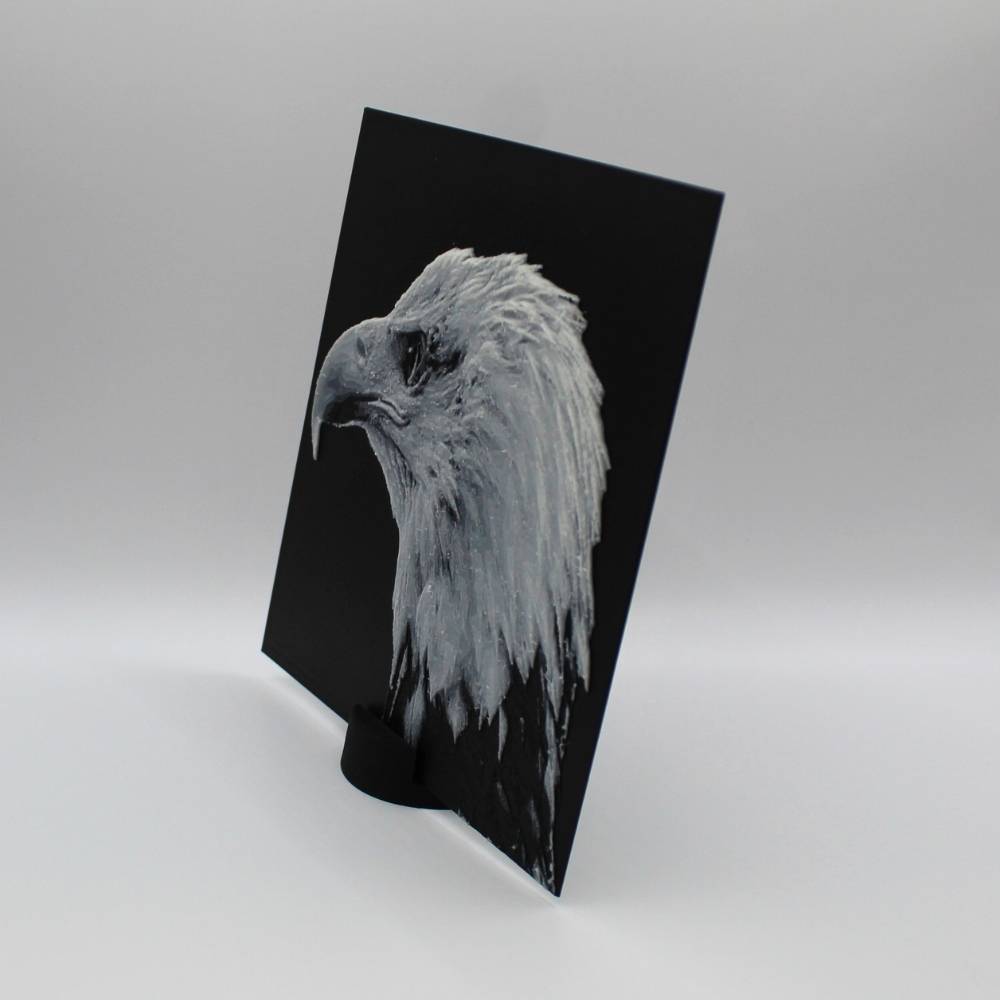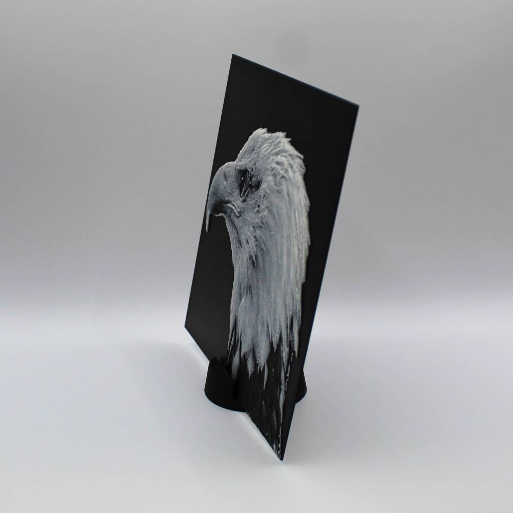 Découvre toute la prestance du pygargue à tête blanche à travers cette photo 3D imprimée en relief, qui met en valeur chaque plume et la puissance de son regard. Le rendu 3D crée un effet de profondeur saisissant qui change selon la lumière et l’angle de vue.